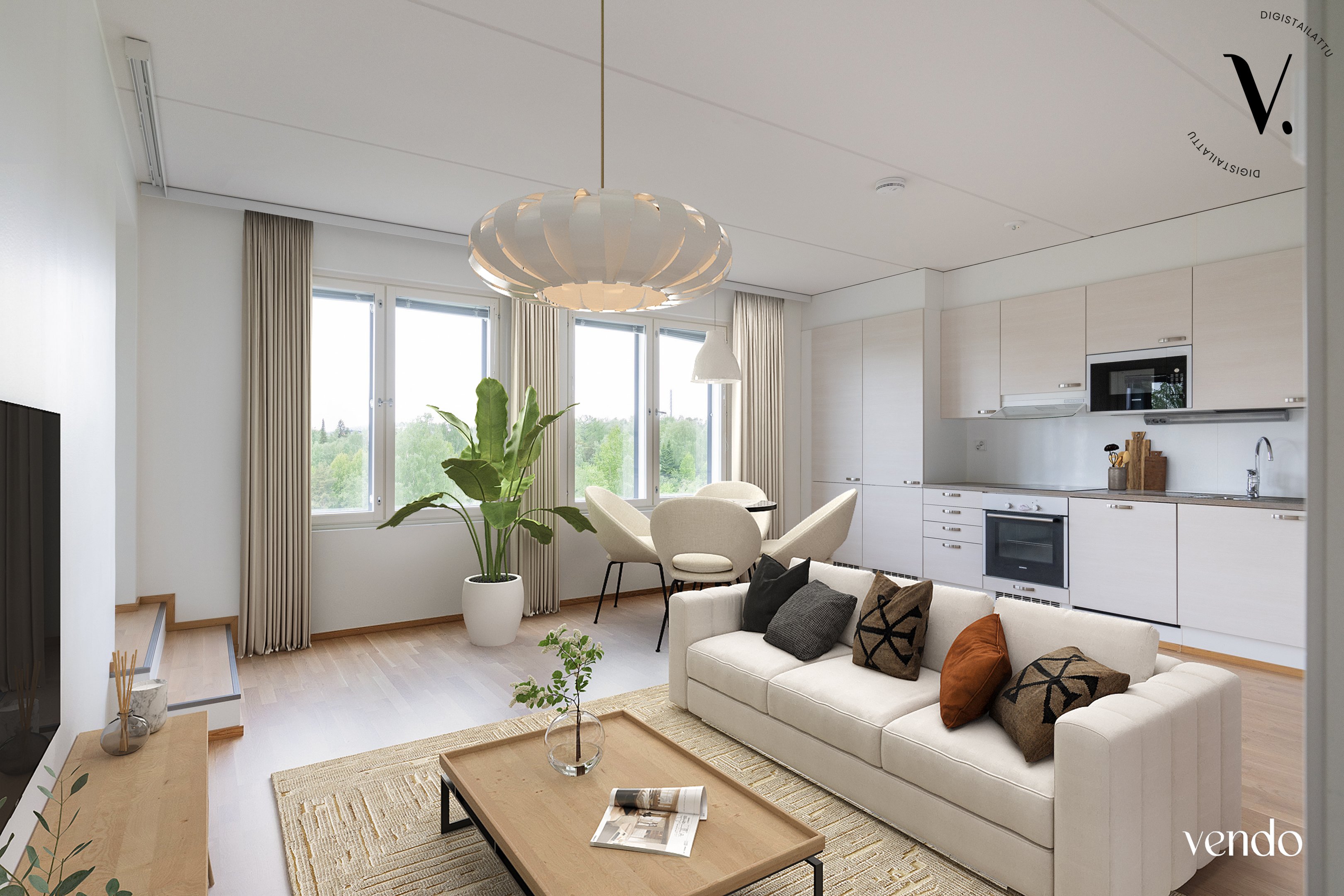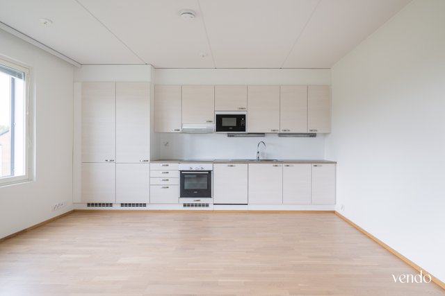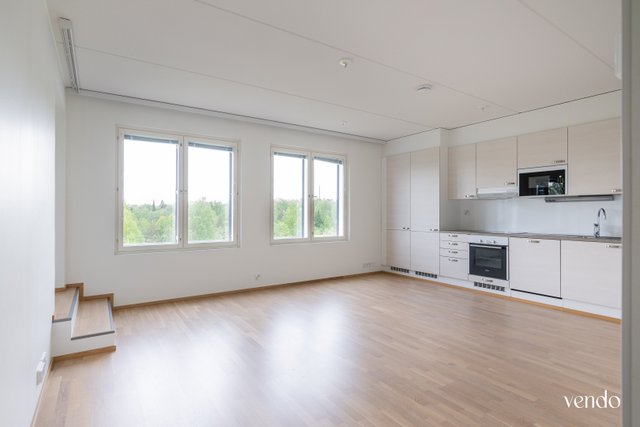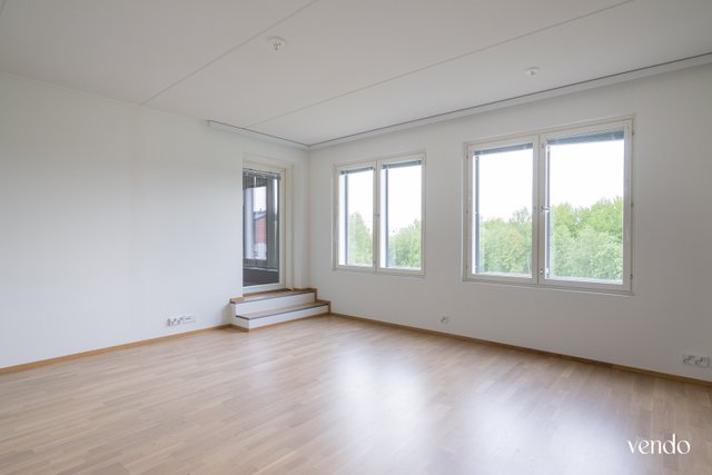 Ylimmän kuudennen kerroksen kattohuoneisto tarjoaa korkeatasoista asumista lähellä kaupungin sykettä. Lasitetulta parvekkeelta aukeaa näkymät kohti Tourujoen laaksoa ja niittymäistä Kankaanpuistoa.