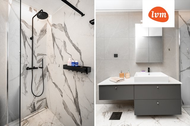 - WC-istuin, suihku, pesukone, peili, pesuallas, ja allaskaappi