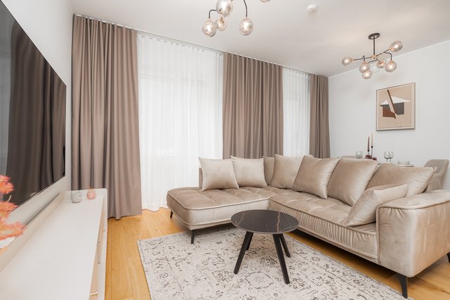 Asunnon sisätiloissa on käytetty korkealaatuisia ja kestäviä materiaaleja. Korkeat sisäkatot ja kolmelasiset energiatehokkaat lattiasta kattoon ulottuvat PVC-ikkunat lisäävät asuntojen avaruutta. Olohuoneen lattiat on päällystetty luonnollisella massiiviparketilla. Kylpyhuoneissa on laadukkaat saniteettikalusteet sekä kivilaatta- ja posliinipintaiset laatat. Asunnossa on vesikiertoinen lattialämmitys, lämmön talteenotolla varustettu ilmanvaihto ja jäähdytysvalmius.