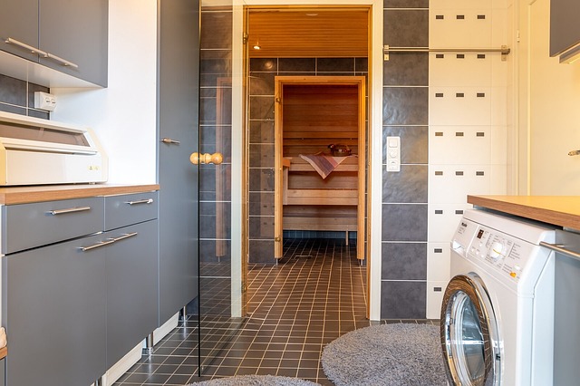 - Lattialämmitys, pyykkikaapit, pesukoneliitäntä, ja pöytätaso