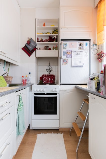 Asunnon kunto on hyvä, ja sen keittiö on varustettu peruslaitteilla, kuten jääkaapilla ja liedellä.