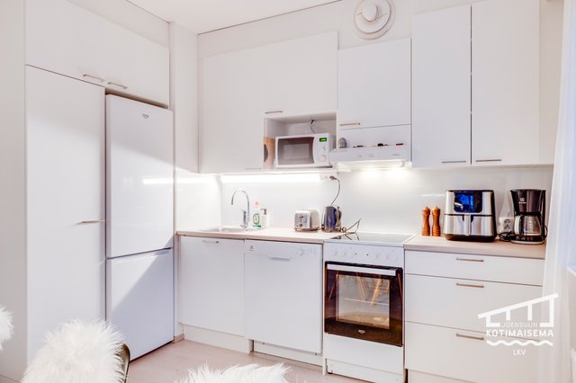 - Jääkaappipakastin, liesituuletin, liesi, ja astianpesukone