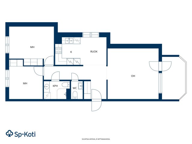 - Näkymät kolmeen ilmansuuntaan. Keittiön päätyikkunasta näkymät pohjoiseen-itään, makuuhuoneista länteen ja parvekkeelta etelään.