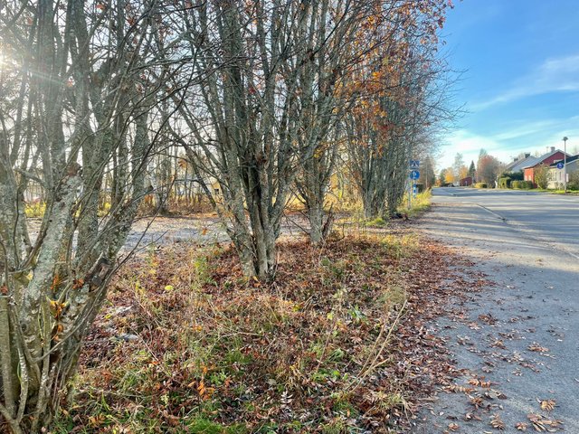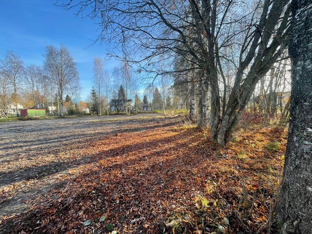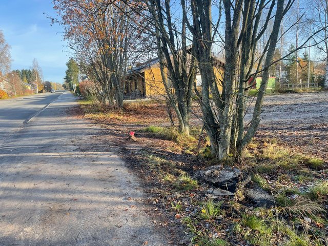 Tontilta on purettu vanha talo pois ja tasattu valmiiksi maapohja. Kookkaat pihapuut on säästetty tontin reunoille. Vesiliittymä valmiina.