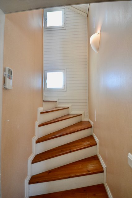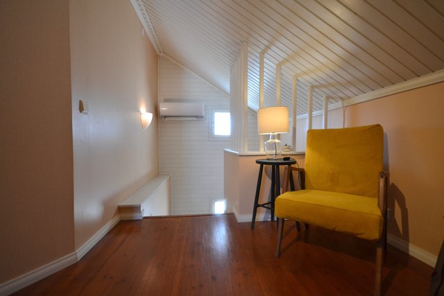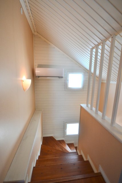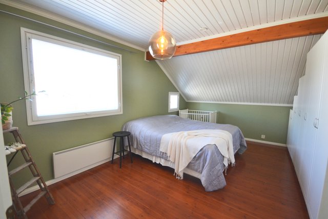 Yläkerta on pyhitetty levolle ja nukkumiselle. Yläkerta on toteutettu 2005 egologisesti ja hengittäviä materiaaleja käyttäen ns. vanhaan hyvään rakennustapaan.