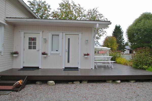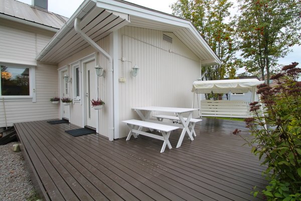 Tontti kodilla on aurinkoinen ja todella suojainen. Täällä voit toteuttaa omat puutarhaunelmasi tai pitää hoidon helppona keskittymällä trampoliineihin ja leikkimökkeihin. Pihasta löytyy myös ulkorakennus jossa tunnelmallinen kesähuone parvella sekä varastotila, jonka muuttaa vaikka ulkosaunaksi. Pihan perällä omenapuiden katveessa sijaitsee myös puuliiteri.