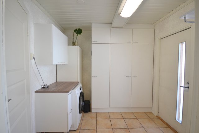 - Käytännöllinen kodinhoitohuone mistä käynti suoraan ulos..