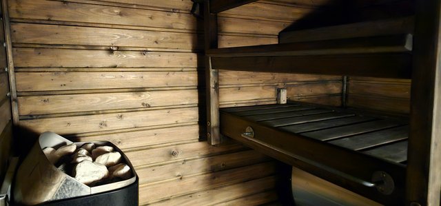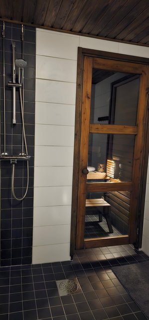 Kylpyhuoneessa on lattialämmitys ja pesukoneliitäntä, ja oma sauna tarjoaa rentoutumishetkiä. Erillinen wc on varustettu bidee-suihkulla ja peilikaapilla. Asunnon eteläpuolelle avautuu katettu terassi, jossa voi nauttia kesäpäivistä.