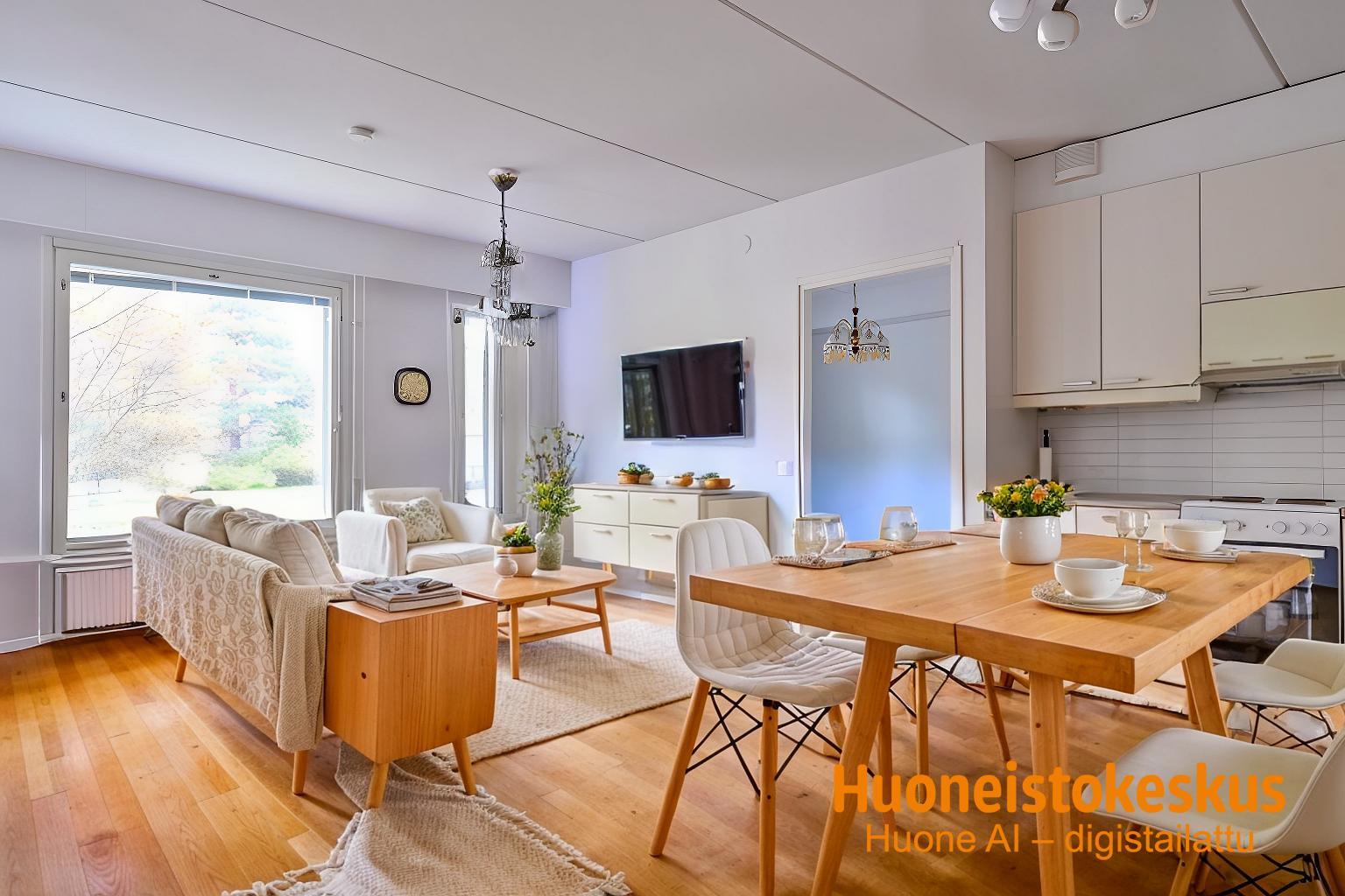 Tämä Oulunsalon palveluiden äärellä oleva kolmio etsiii uusia asukkaitaan! Isommassa makuuhuoneessa on kulmaikkuna, josta tulvii valoa huoneeseen. Pienemmässä makuuhuoneessa on suuri vaatehuone, joka tuo valtavasti lisää säilytystilaa. Tupakeittiö ja olohuone ovat yhtä tilaa ja tilaan mahtuu ruokailu- ja sohvakalustojen lisäksi myös esimerkiksi työtila. Omassa saunassa voi nauttia löylyistä juuri silloin kuin itse haluaa.