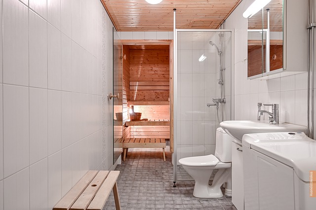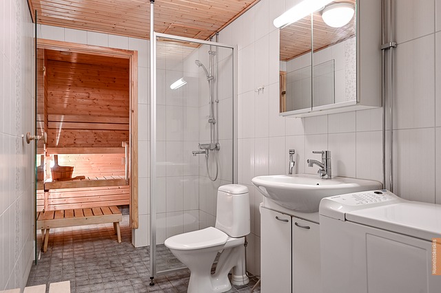 - Suihkuseinä, wc-istuin, suihku, pesukoneliitäntä, pesuallas, bidee-suihku, ja peilikaappi