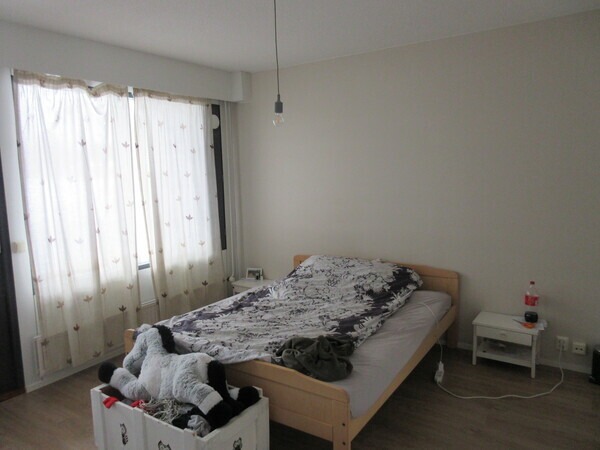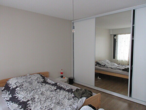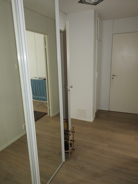 - Vinyylilatti, maalatut seinät, maalattu betonikatto. Yhdellä seinällä kaapistot, jossa liukuovet ja yksi osa peiliä. Pintaremontoitu 2018.