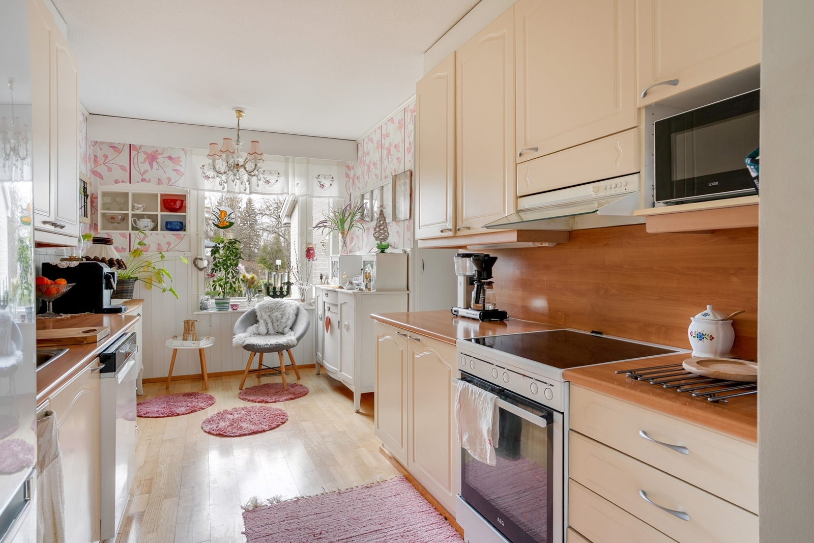 Tilava ja toimiva 4h rivitalokoti päätyasunnossa. Alakerrassa olohuone, keittiö ja erillinen wc. Yläkerrassa kolme makuuhuonetta, vaatehuone sekä kylpyhuone-sauna-kodinhoitohuoneyhdistelmä, josta suora käynti omalle parvekkeelle - ihana paikka vilvoitella saunan jälkeen. Suojaisa takapiha, terassi ja oma autokatospaikka viimeistelevät kokonaisuuden.