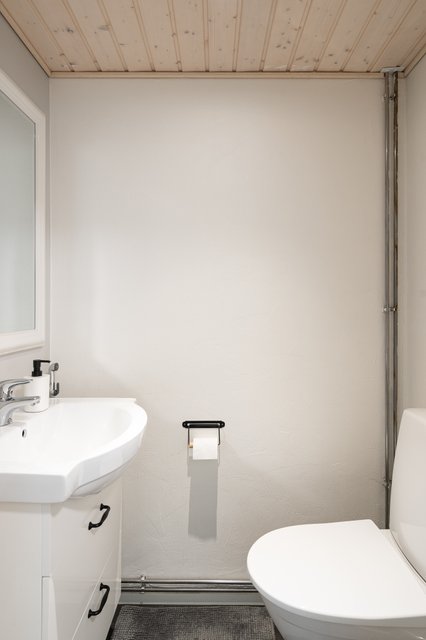 - Erillinen wc remontoitu 2014. Lattia laattaa, seinissä laatoituksen päälle laitettu märkätilalaasti ja lujamaali. Peili, allaskaappi ja wc-istuin. Lattialämmitys.