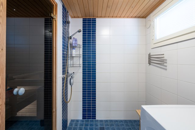 - Kylpyhuone remontoitu 2008, lattianrajan silikonisaumat uusittu 2025. Lattia ja seinät laattaa. Suihku, varaus pyykinpesukoneelle ja ikkuna. Lattialämmitys.