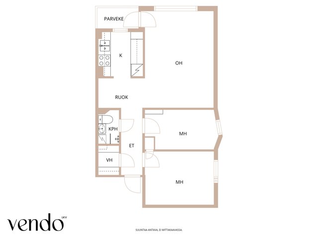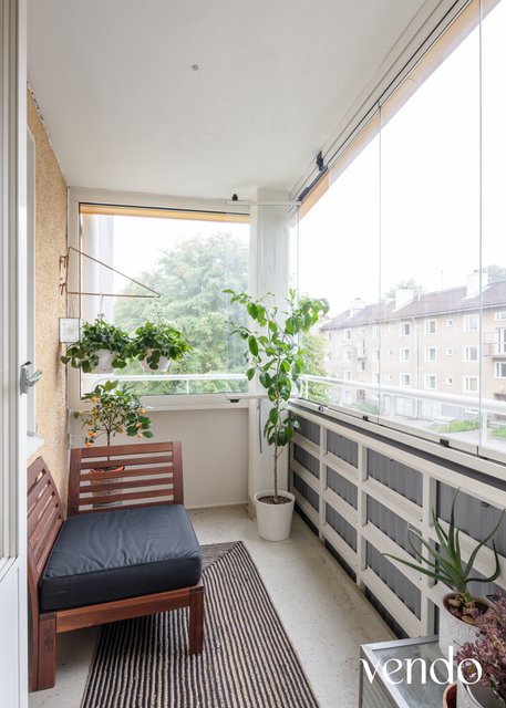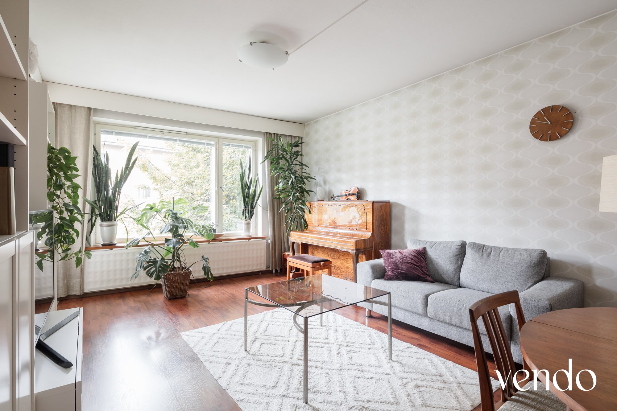 Asunnon pohjaratkaisu on toimiva ja valoisa. Tilava olohuone kutsuu viihtymään ja jatkuu suoraan lasitetulle parvekkeelle. Erillisessä keittiössä on iso ikkuna ja reilusti kaappitilaa Kaksi makuuhuonetta sopivat erinomaisesti perhekäyttöön tai etätyötiloiksi. Monipuolinen kaappitila, vaatehuone sekä vintti- ja kellarikomero tarjoavat runsaasti säilytystilaa. Linjasaneerauksen yhteydessä uusittu kylpyhuone on moderni ja tyylikäs.