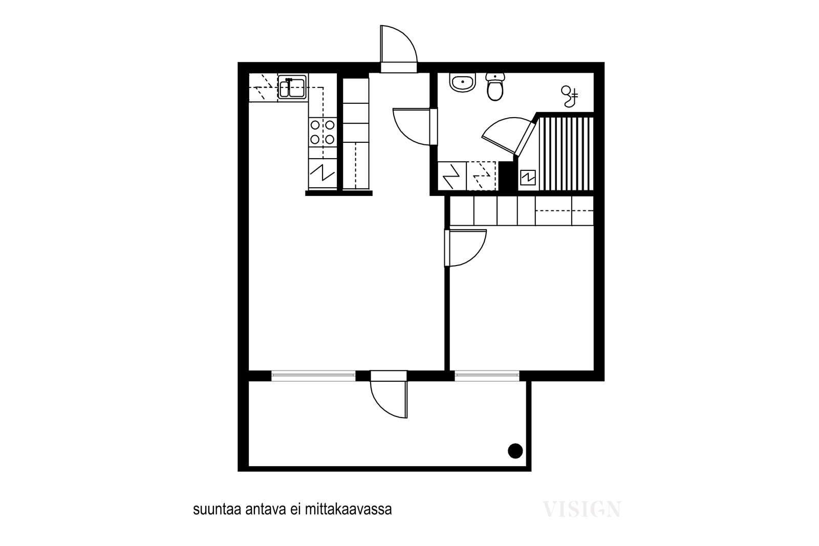 Valoisa, 47,0m2, saunallinen kaksio myytävänä, aivan Rajamäen keskustassa.