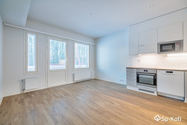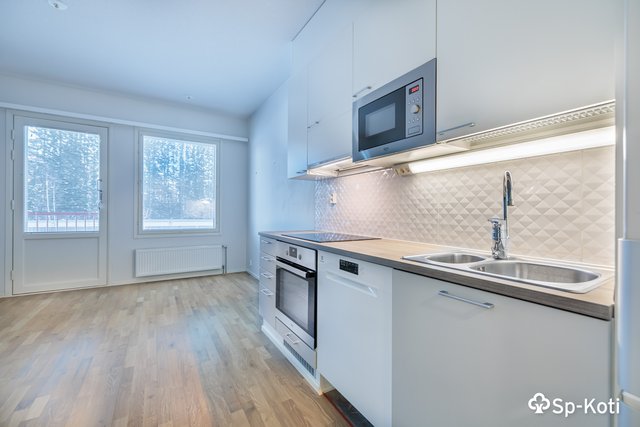 - Jääkaappipakastin, erillisuuni, mikroaaltouuni, ja astianpesukone