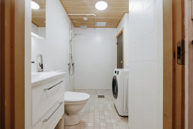 - WC-istuin, suihku, lattialämmitys, ja pesukoneliitäntä