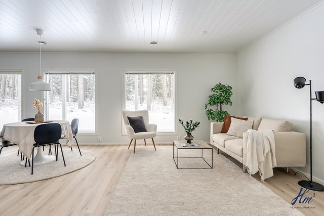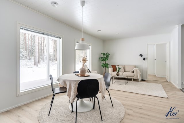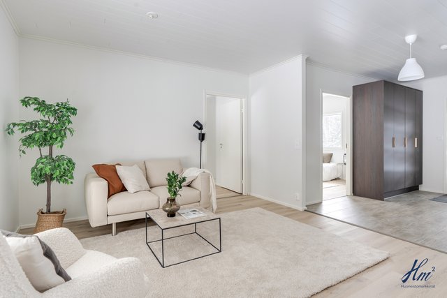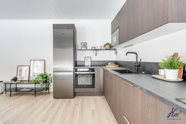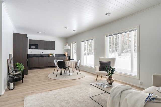 Asunnon kerrosala on 85 m² ja huoneistoala 75 m², ja pohjaratkaisu on tehokas ja toimiva. Avara olohuoneen ja avokeittiön yhdistelmä muodostaa kodin viihtyisän sydämen, ja keittiötä täydentävät laadukkaat Puustellin kalusteet. Kokonaisuuteen kuuluu kaksi makuuhuonetta, erillinen wc, kodinhoitohuone, kylpyhuone ja sauna. Energiatehokas poistoilmalämpöpumppu sekä vesikiertoinen lattialämmitys takaavat miellyttävän asumismukavuuden ja maltilliset käyttökustannukset ympäri vuoden.