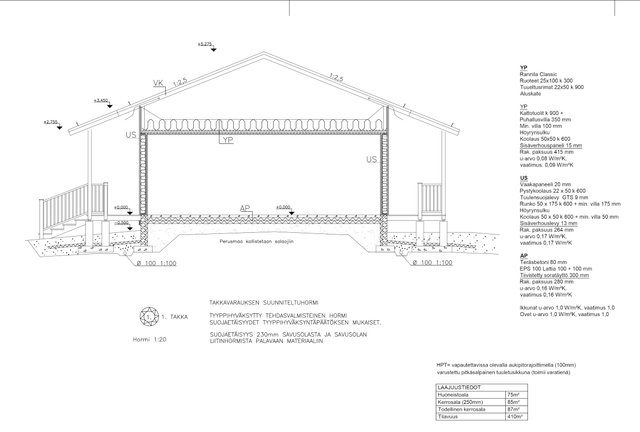 - Rakennuslupa asiakirjojen mukaan talon kerrosala on 85 m² ja huoneistoala on 75 m².