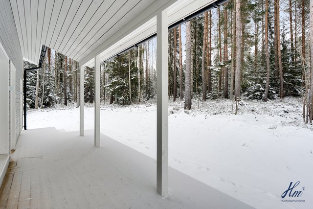 Lisäksi taloon kuuluu autokatos ja varasto. Rauhallinen ja luonnonläheinen sijainti yhdistyy sujuvaan arkeen, sillä koulut ja päiväkodit ovat kävelyetäisyydellä ja hyvät liikenneyhteydet Turun ja Helsingin suuntaan tekevät arjesta sujuvaa.