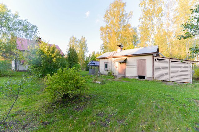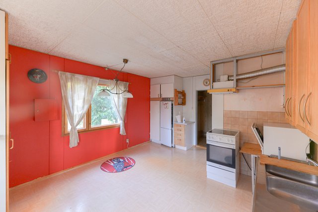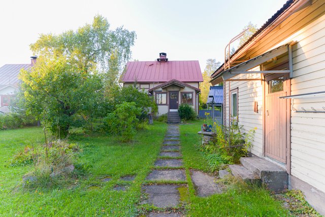 Perinteinen rintamamiestalo, missä tilat ovat kolmessa kerroksessa. Yläkerrassakin on keittiö ja wc ja asunto on siis mahdollista vaikka vuokrata. Kellarissa on siisti sauna ja hyvät työtilat. Tilavassa piharakennuksessa on sauna sekä pukuhuone missä on pieni takka, lisäksi reilusti varastotilaa. Oma 892 m2 kulmatontti, vieressä hyvä tila autoille.
