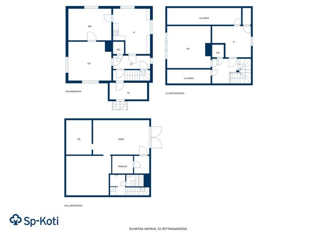 alak 2h+k+wc, yläk 2h+wc, kellarikerros s