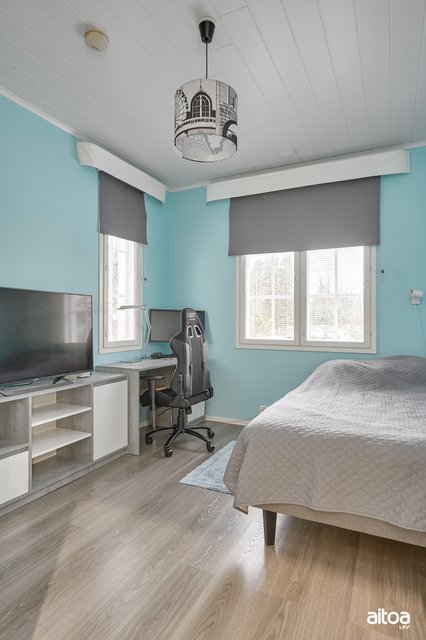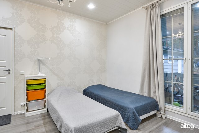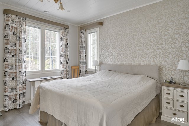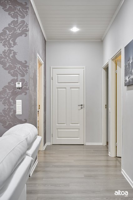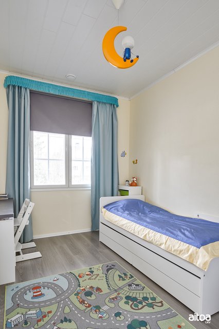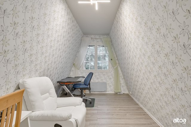 - Alakerran makuuhuoneissa sähköinen lattialämmitys, yläkerran makuuhuoneissa seinäpatterit.