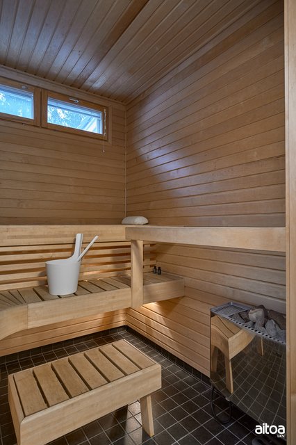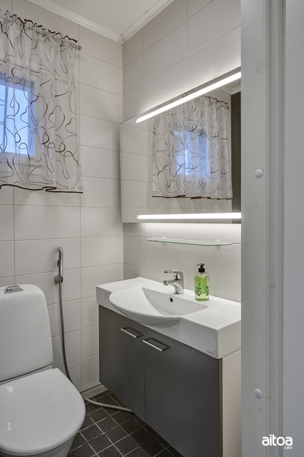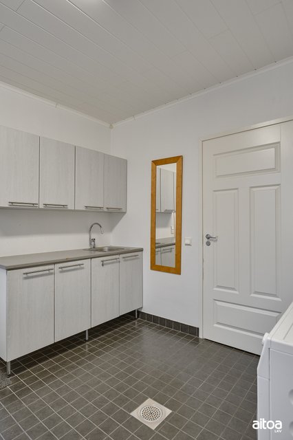 - Kaapisto, pesuallas, kurapiste, pk-liitäntä, sähköinen lattialämmitys.