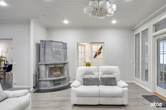 Energiatehokkaasti poistoilmalämpöpumpulla lämpiävässä, vuonna 2012 valmistuneessa talossa on alakerrassa lattialämmitys, joka lisää asumismukavuutta. Olohuoneessa on näyttävä ikkunaseinä, jonka läpi voit katsella pihan jatkeena olevaa metsämaisemaa. Tasaisella nurmipihalla on n. 15 m² kokoinen grillikota, jossa on mukava viettää aikaa ympäri vuoden.
