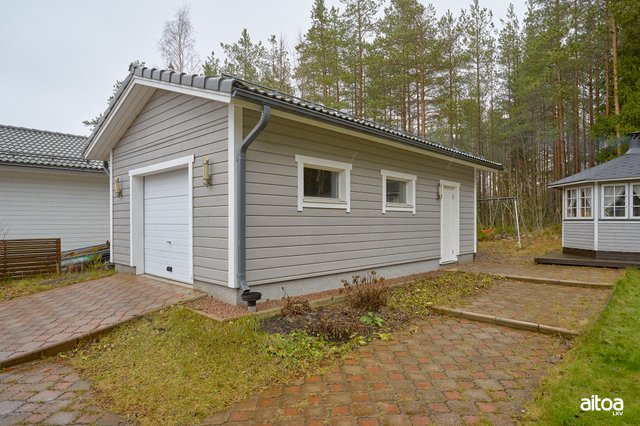 - Autotalli/varastorakennus n. 43 m² ja grillikota (2014) n. 15 m².