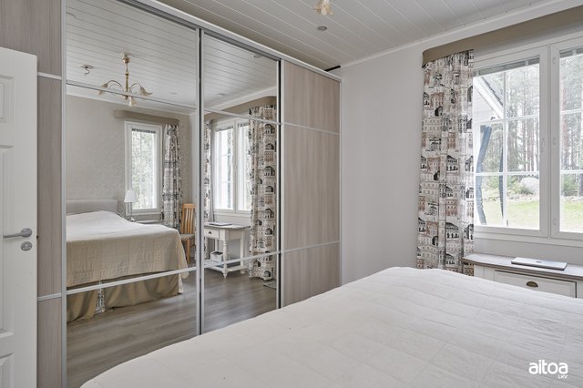 - Eteisen liukuovikaapisto, makuuhuoneiden kaapistot, kylmä varasto autotallin yhteydessä.