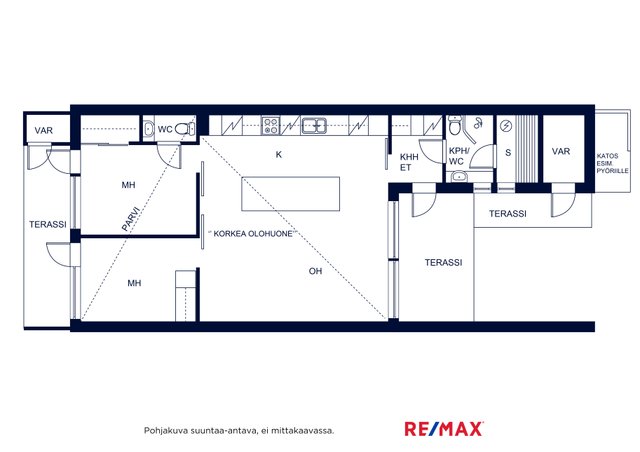 3h, avok, s/kph/wc, khh, parvi, vh, läm. var, var, ap, terassit 2 kpl