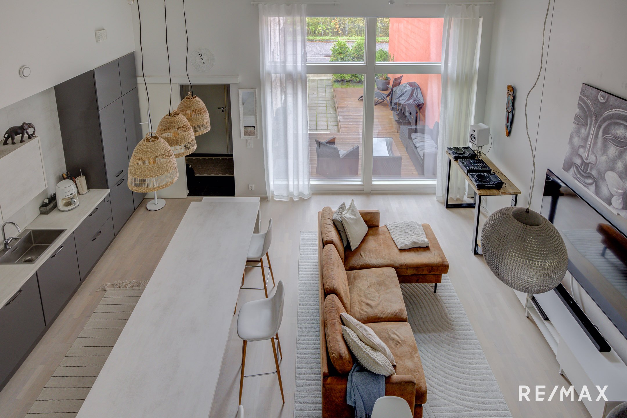 HARVINAISUUS. Nyt myynnissä vuonna 2018 valmistuneessa kivitaloyhtiössä arkkitehtoonisesti harvinainen ja todella upea rivitalohuoneisto, jossa paljon hienoja yksityiskpohtia!