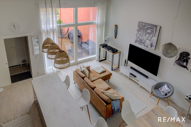 HUONEISTON pohjaratkaisu on erittäin tehokas, eikä hukkaneliöitä ole! Asunnon huonekorkeus on korkeimmillaan 4,25 m ja kokonaisuus onkin huomattavasti neliöitään suuremman oloinen. Pinta-ala on yhteensä noin 91 m2 (yhtiöjärjestyksen mukainen pinta-ala 70 m2 + parvi noin 21 m2).