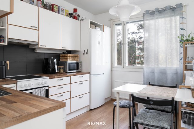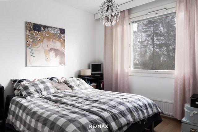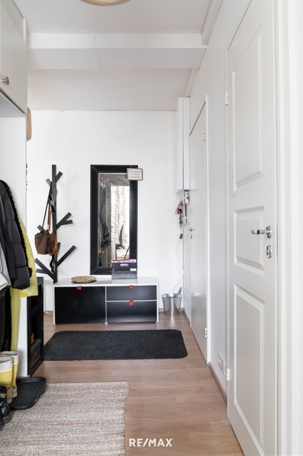Keittiö on tyylikäs ja ajaton, käytännöllisin materiaalein toteutettu. Olohuoneeseen on helppo rakentaa sekä sohvaryhmä että ruokailunurkkaus, ja säilytys on poikkeuksellisen toimiva: vaatehuone, kaapistot ja kellarin häkkivarasto pitävät tavarat järjestyksessä. Linjasaneerauksen yhteydessä vuonna 2023 uudistettu kylpyhuone tuo elämään huoletonta helppoutta. Kolme makuuhuonetta sopivat mainiosti perheelle, etätyöhuoneeksi tai vieraille.