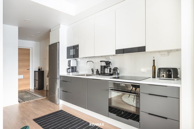 - -Liesi (induktio) - Kaapistot - Mikroaaltouuni (integroitu) - Astianpesukone (integroitu) - Jääkaappi / pakastin Lattia: parketti Seinät: maalattu