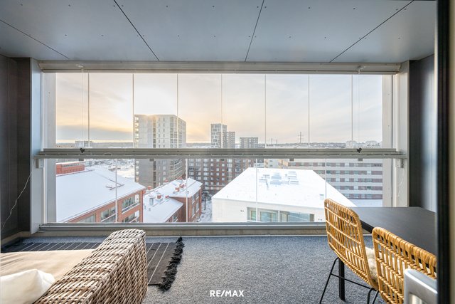 Uudesta, huippumodernista taloyhtiöstä tarjolla 13. kerroksen fantastinen näköalakoti! Asunnon ja sen parvekkeen ilmansuunta on optimaalisesti lounaaseen. Korkea sijainti mahdollistaa sen, että viereinen talo ei peitä asunnon näkymiä. Asunnolle kuuluu oma suuri lasitettu parveke. Pintojen sävyt ja värimaailma ovat ajattomat ja modernit. Juuri valmistunut tornitalo sijaitsee omalla tontilla. Vastike on maltillinen, 3,70 euroa / m² eli 190,55 euroa / kk. Jatkuvasti kehittyvä sijainti sopii monelle, sillä liikkuminen on helppoa ja vaivatonta. Uusi kauppakeskus Hertsi sijaitsee vain 600 metrin kävelymatkan päässä ja Herttoniemen metroasema noin 800 metrin etäisyydellä.