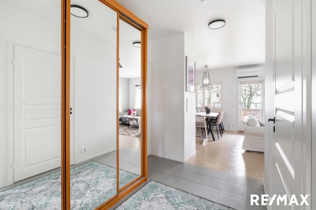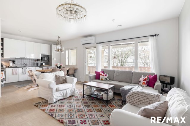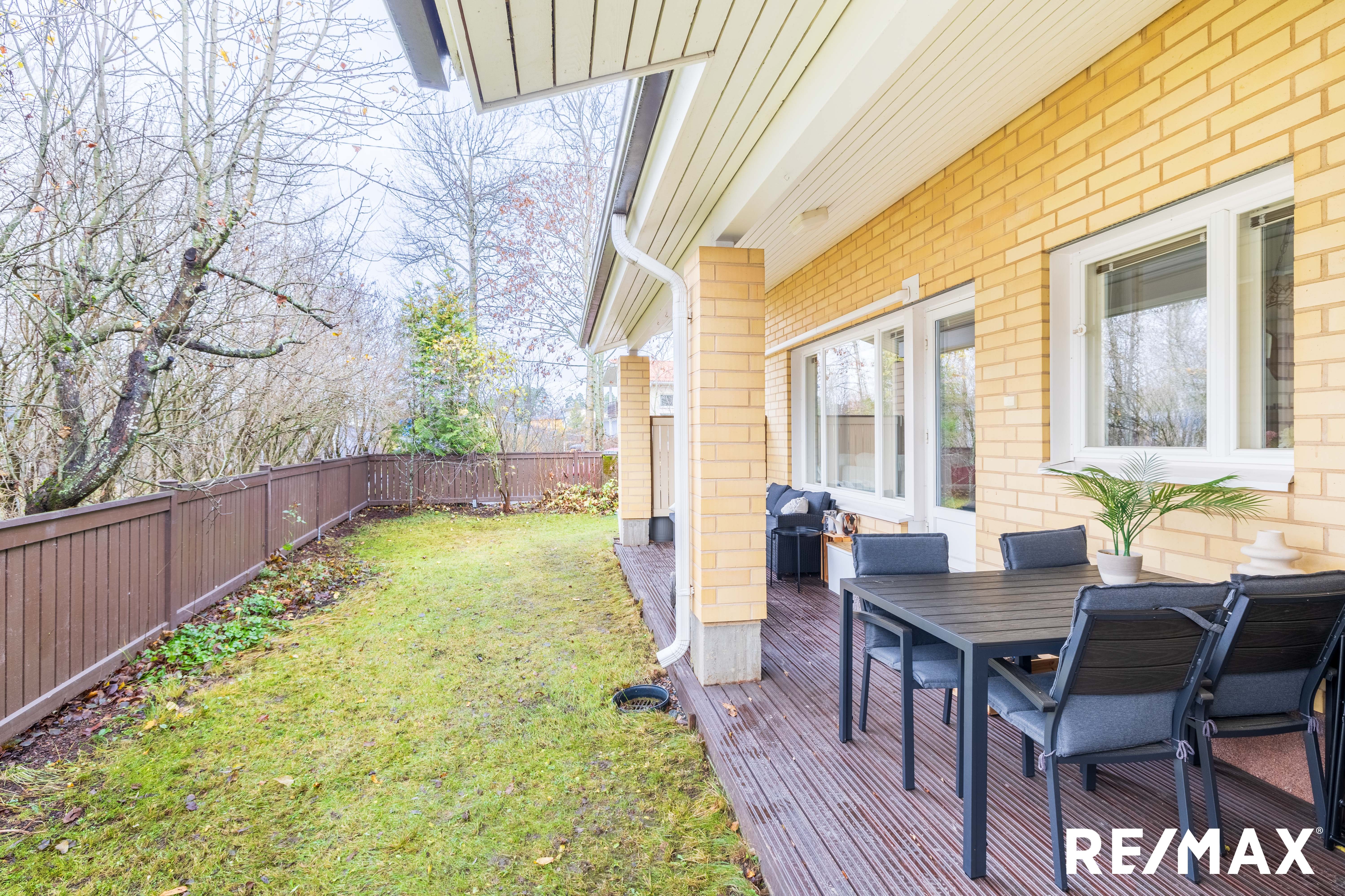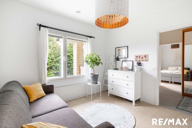 Kodin olohuone on avara ja valoisa, ja varaava takka luo sekä tunnelmaa että käytännöllistä lämpöä. Olohuoneesta avautuu suora kulku tilavalle terassille, joka toimii luonnollisena jatkeena oleskelutiloille keväästä syksyyn. Keittiö on toimiva ja varustettu laadukkailla kodinkoneilla. Kiettiön yhteydessä on hyvin tilaa ruokailulle. Kaksi makuuhuonetta tarjoavat rauhalliset puitteet lepoon, joista toisessa hyvin tilaa työtilaksi. Juuri uusitut märkätilat tekee arjesta sujuvaa ja on suunniteltu toiminnallisuus edellä.