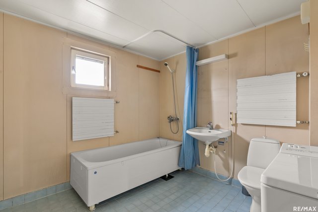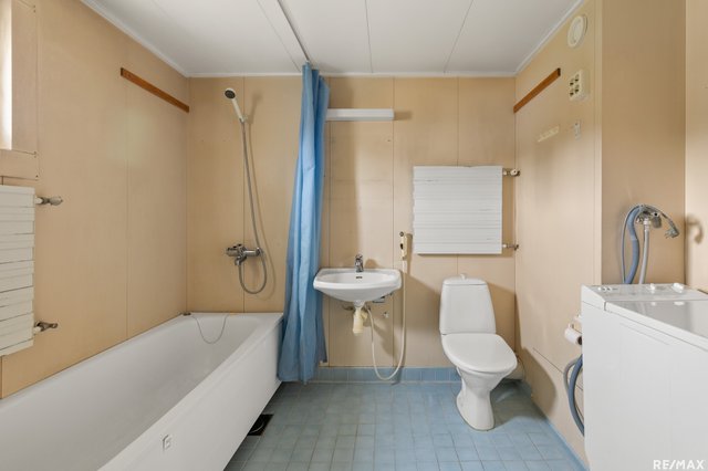 - WC-istuin, suihku, kylpyamme, pesukoneliitäntä, patterit, pesuallas, ja bidee-suihku