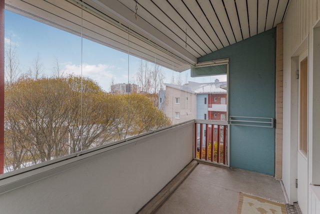 Valoisa ja hyvin pidetty läpitalon kolmio vuonna 1998 rakennetussa hissitalossa. Asunto sijaitsee ylimmässä, 3. kerroksessa, ja sen lasitettu etelään avautuva parveke tarjoaa viihtyisän lisätilan pitkälle syksyyn. Vain yksi seinänaapuri tuo asumiseen rauhaa ja yksityisyyttä. Asunto on siisti peruskuntoinen ja hyvin hoidettu, joten siihen voi muuttaa sellaisenaan tai päivittää pintamateriaalit oman maun mukaan.