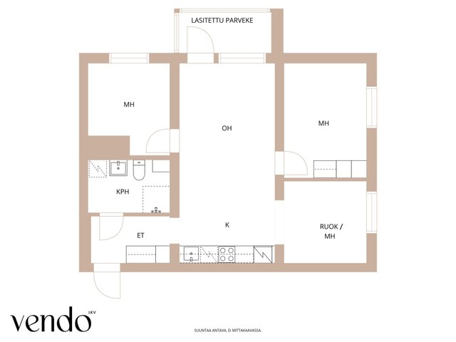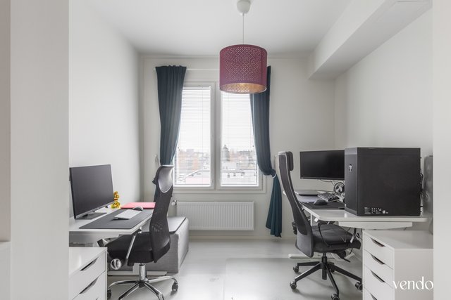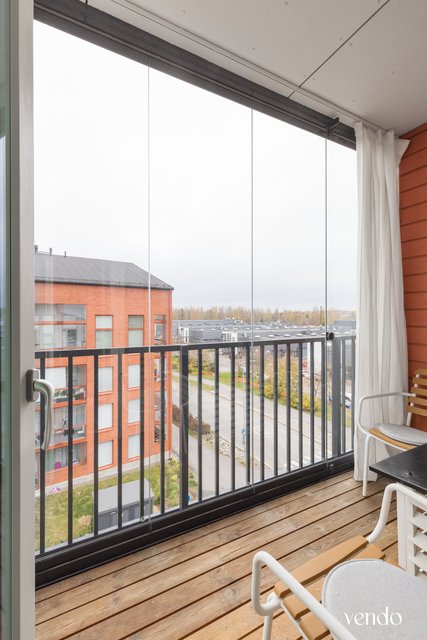 Tämä vuonna 2020 valmistunut ylimmän kerroksen koti tarjoaa huolettoman asumisen modernissa yhtiössä. Asunnon pohjaratkaisu on tehokas — kolmen makuuhuoneen lisäksi olohuone ja keittiö muodostavat yhtenäisen, viihtyisän tilan arjen oleskeluun ja yhdessäoloon. Keittiö on käytännöllinen ja varusteltu laadukkaasti: induktioliesi, jääkaappipakastin, mikroaaltouuni, uuni, liesituuletin ja astianpesukone tekevät ruoanlaitosta vaivatonta. Vaaleat pinnat ja lattiat tuovat tilaan raikkautta ja helppoa ylläpitoa.  Kylpyhuone on tyylikäs, tilava varustettu lattialämmityksellä. Lasitettu parveke toimii lisähuoneena keväästä syksyyn ja tarjoaa mukavan näkymän sisäpihan yli. Ilmalämpöpumppu tuo asumiseen mukavuutta ympäri vuoden.