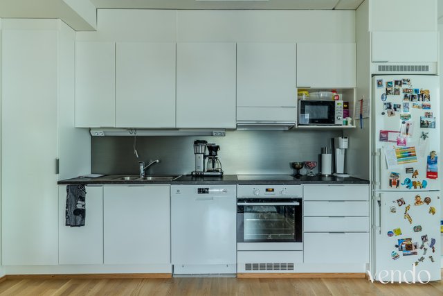 - Jääkaappipakastin, uuni, liesi, liesituuletin, ja astianpesukone