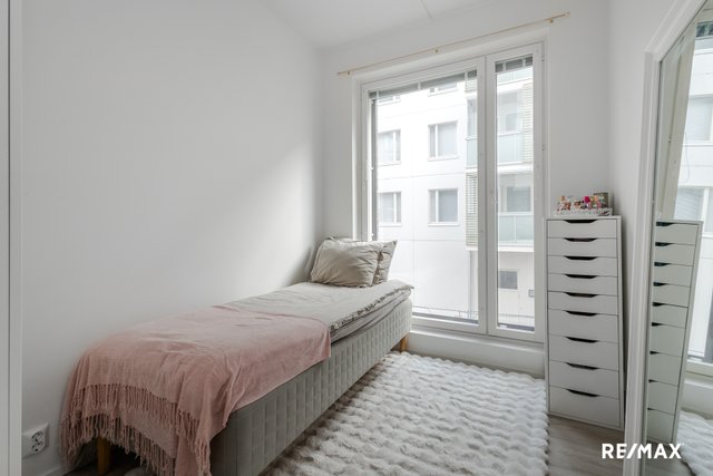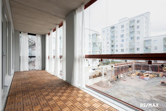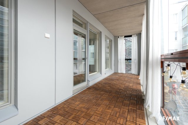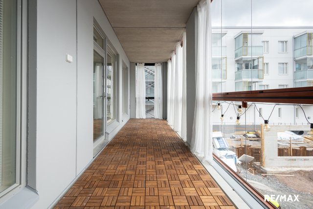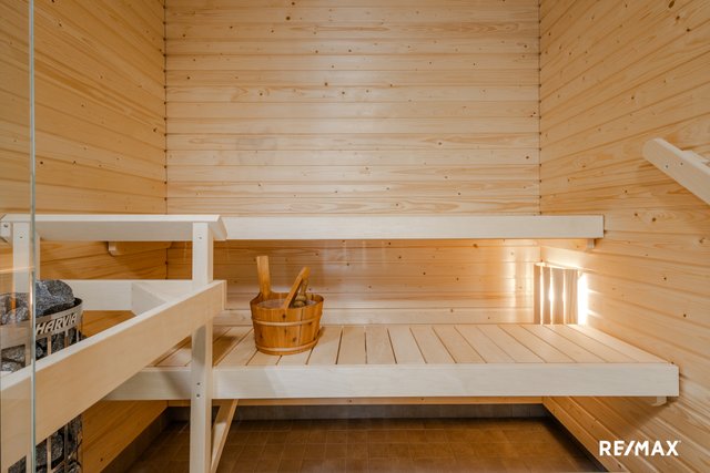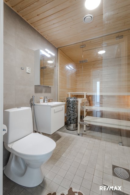 Asunnon kruunaa oma sauna, jossa voi rentoutua päivän päätteeksi. Lisäksi asunnossa on etelään suuntautuva valtava lasitettu parveke, joka tuo mukavasti lisätilaa ja valoa. Kylpyhuone on tyylikäs ja käytännöllinen. Saunan ja pesuhuoneen jakaa tyylikäs lasiseinä.