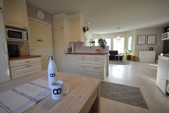- Tilava keittiö ja hyvä varustelu.