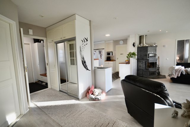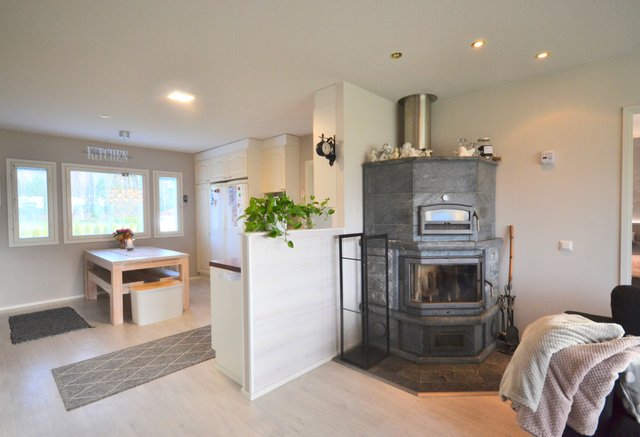Kun on aika ladata akkuja, ei mikään ole niin rentouttavaa kuin aito takkatulen loimu. Tilaratkaisut palvelevat monen kokoista perhettä ja makuuhuoneet ovat sopivan kokoisia, kuten kaikki muutkin kodin tilat. Säilytys-ja varastotilaa on reilusti ja autolle lämmin autotalli.