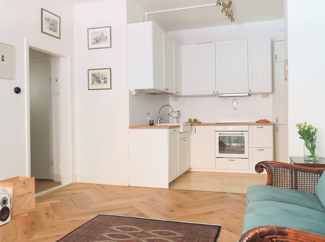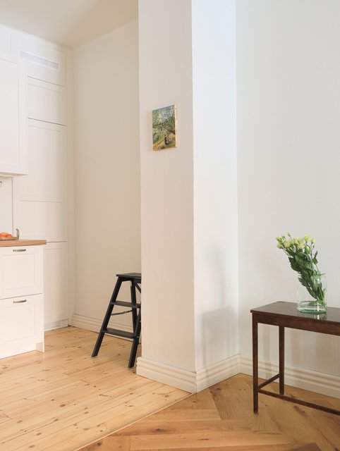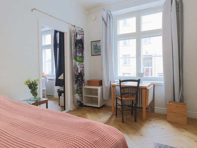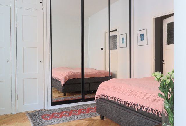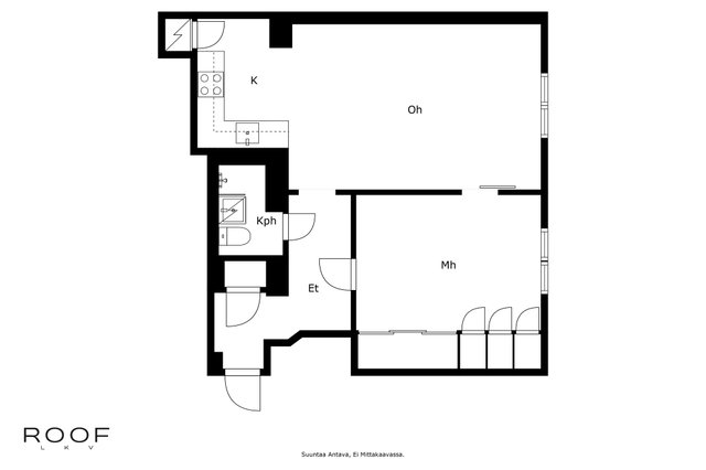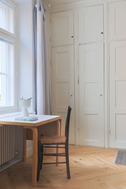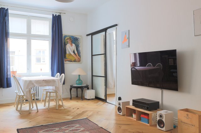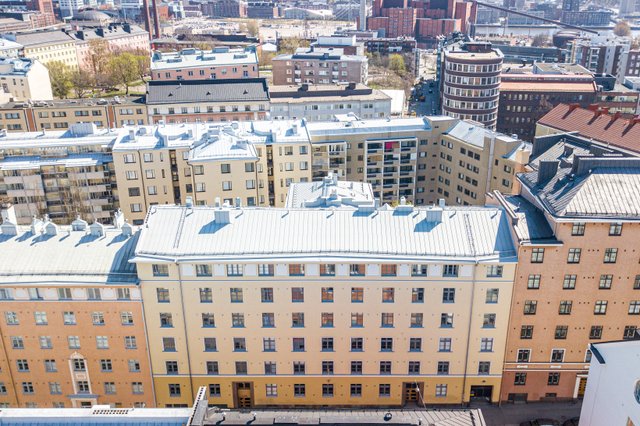 Tilavat huoneet, joissa ihastuttavat huikea huonekorkeus, isot ikkunat sekä . Olohuoneessa tilaa niin isommalle ruokapöydälle kuin oleskelutilalle. Makuuhuoneessa hurmaa alkuperäinen kaapisto peiliovilla. Tyylikkäässä keittiössä on reilusti säilytys-ja laskutilaa. Pitkää eteistä on mahdollista hyödyntää myös säilytystilana. Kylpyhuone uusittu putkiremontin yhteydessä 2011.
