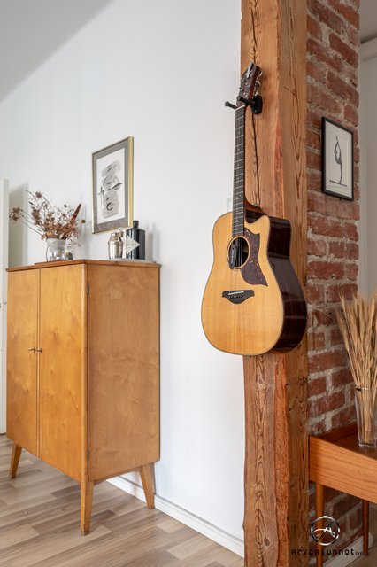 Olohuone on kodin sydän – valoisa ja avara tila, jossa on tilaa niin yhdessäololle kuin sisustuksen luovuudelle. Katse kiinnittyy hiottuihin yksityiskohtiin: tiiliverhoilun lämmin pinta tuo huoneeseen luonnetta, ja tilaa kehystävä puupalkki rytmittää kokonaisuutta elegantilla tavalla.