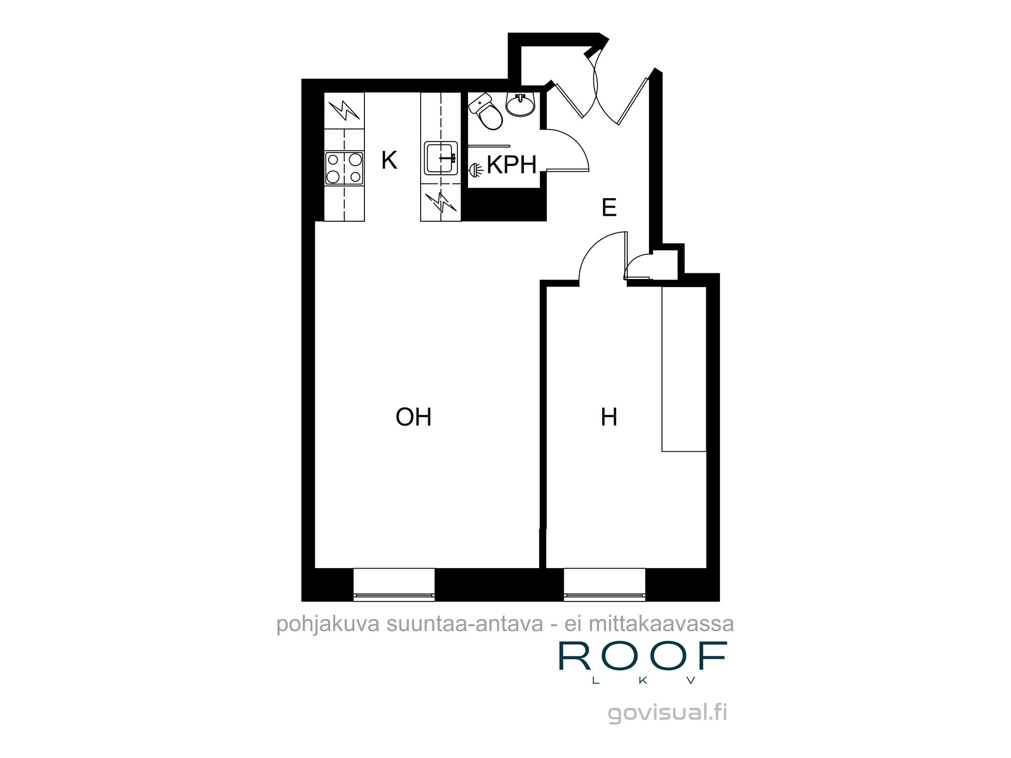 2h, k, kph (yhtiöjärjestyksen mukaan 1h+k+suihkuh.)