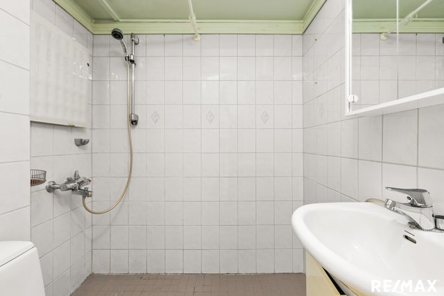 - Tilava kylpyhuone, joka remontoidaan putkiremontin yhteydessä.